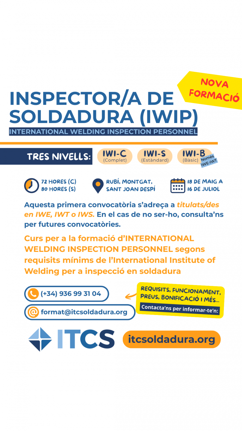 Inspector/a de soldadura: mAIG a julioL 2026 - Inscripcions ObertEs