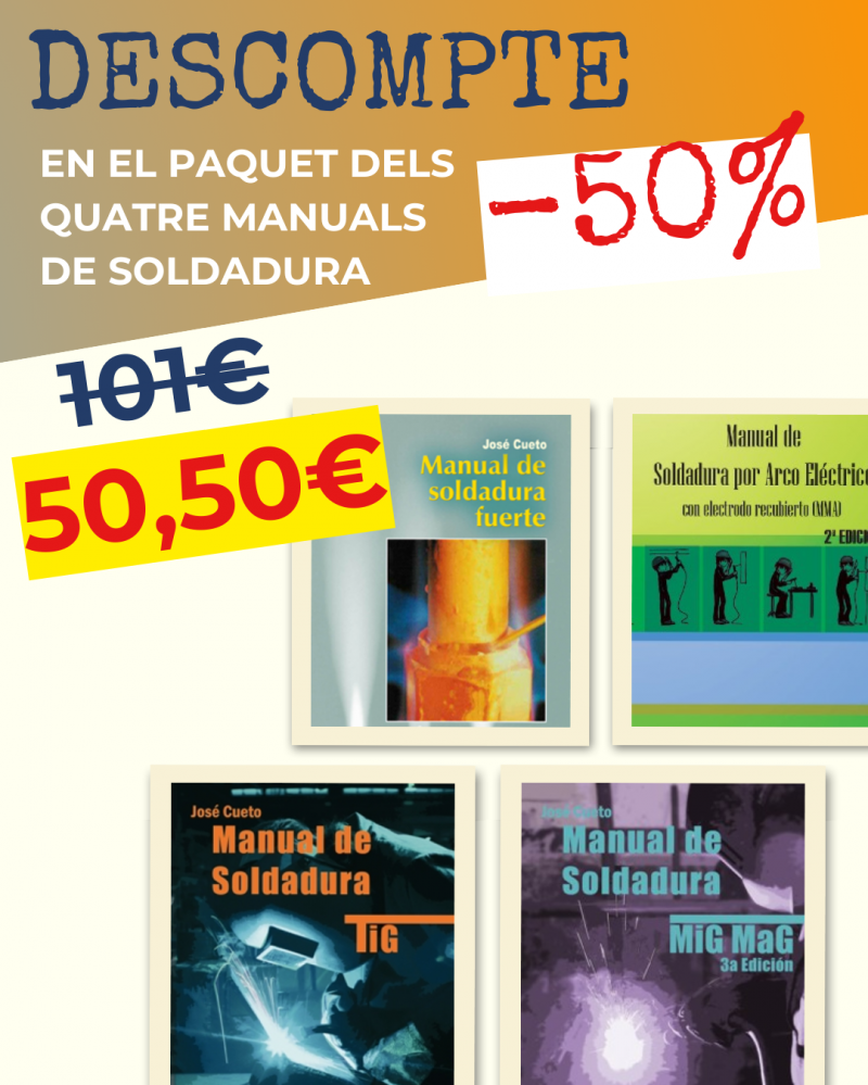 Ofrecemos un gran descuento del 50% en los cuatro manuales de soldadura.